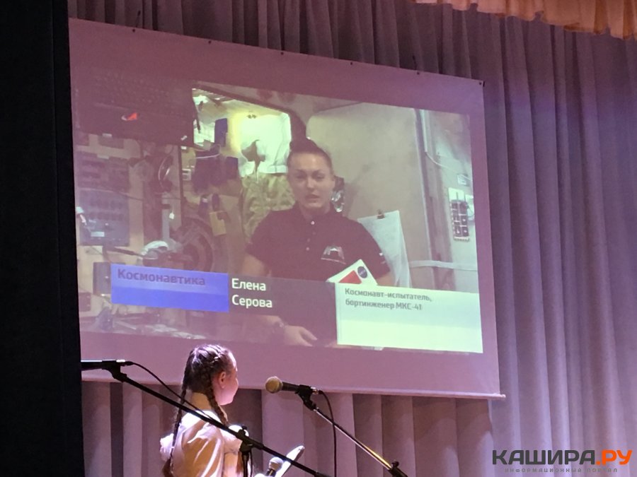 В преддверии празднования Дня космонавтики Каширу посетила Елена Серова - космонавт-испытатель отряда ФГБУ «НИИ ЦПК имени Ю. А. Гагарина», депутат Госдумы, Герой Российской Федерации, первая женщина-россиянка, побывавшая на Международной космической станции.