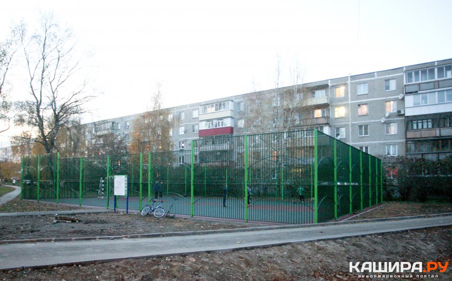 За домом №58 по улице Стрелецкой в Кашире-1 заработала новая универсальная спортивная площадка. Фактически, сама площадка была подготовлена заранее: отведены коммуникации и уложено асфальтовое покрытие. Оставалось только смонтировать элементы спортивного объекта.