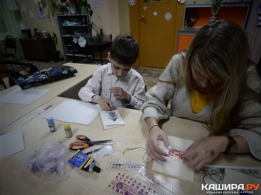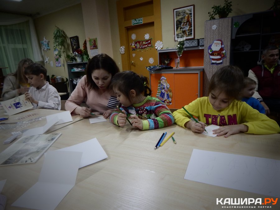 25 декабря 2017 года в детском экологическом центре г.о. Кашира прошло интересное и очень нужное мероприятие. Дети из замещающих семей и дети с ограниченными возможностями здоровья мастерили и подписывали новогодние открытки для пожилых людей. Ребята с удовольствием рисовали ёлки, украшали их блёстками, подписывали открытки с пожеланиями добра, здоровья, хороших праздничных дней.