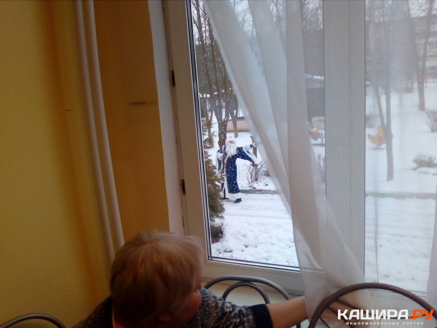 А радости добавило появление ещё и Деда Мороза, сначала на улице, за ним наблюдали в окно, потом в зале. Ну и как обойтись без хоровода, без подарков.