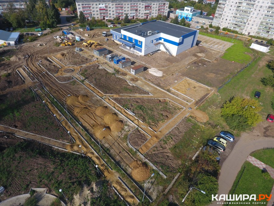 В марте 2016 года на пустыре посреди Каширы-3 приступили к строительству физкультурно-оздоровительного комплекса с бассейном. В апреле уже на месте котлована был заложен первый символичный кирпич, но дальше что-то пошло не так. На определенном этапе ранее довольно высокие темпы строительства стали продвигаться буквально черепашьими темпами. В течение 2017 года открытие ФОКа «Олимп» то назначалось, то снова переносилось. Недостающие несколько процентов до полноценного завершения работ в этом году так и не добрали, хотя объективно здание и прилегающая территория, за исключением деталей, уже обрели окончательный вид.
