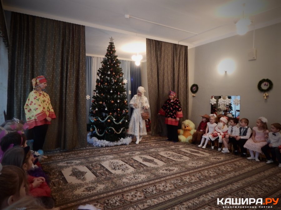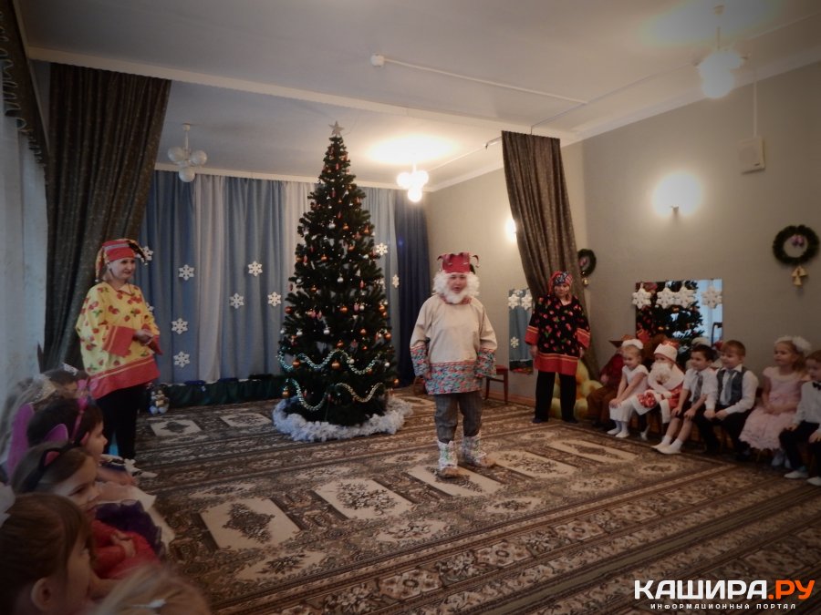 В девятом детском саду праздники прошли с участием воспитателей, помощников воспитателей, музыкального руководителя, родителей и, конечно, самих детей. Открыли торжество Скоморохи, Снегурочка, наряжающая ёлку.