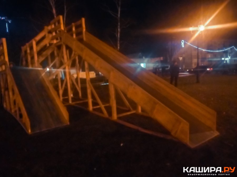 За два дня до наступления Нового года в сквере у АТС начали монтировать деревянную горку для катаний, об установки которой мы сообщали еще в ноябре. Конструкция получилась с двумя скатами – коротким и длинным – для разных возрастов. Правда, погода в новогоднюю ночь, когда намечалось ее первое массовое «испытание», к сожалению, не порадовала. Снег растаял накануне, оставив после себя лишь поляну с грязью. Поэтому, до полноценных катаний теперь предстоит запастись терпением.