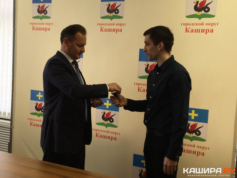 В торжественной обстановке в окружной администрации глава городского округа Кашира Алексей Спасский вручил двум молодым специалистам здравоохранения ключи от служебных квартир. Счастливыми обладателями просторных жилищ стали врач-хирург, заведующий отделением хирургии КЦРБ Максим Мицук с супругой Анной и четырехгодовалой дочкой, а так же семья врача кардиолога-анестезиолога операционного отделения КЦРБ Александра Настоящего.