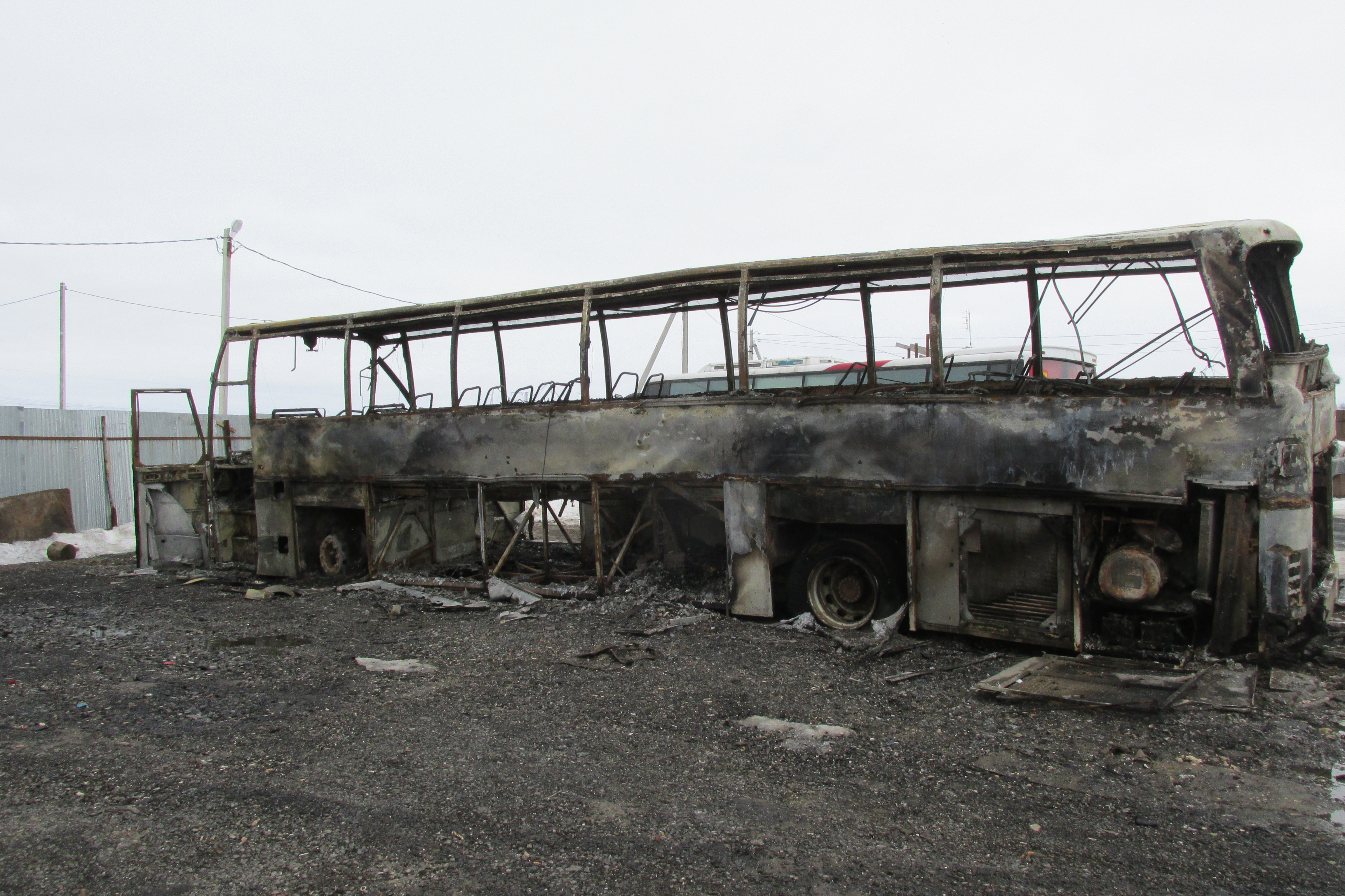 Огонь охватил большой туристический автобус «Setra 215». Автобус располагался на закрытой стоянке автотранспорта.В результате пожара транспортное средство выгорело дотла. Огонь полностью уничтожил салон, не пощадил и кузов автобуса.