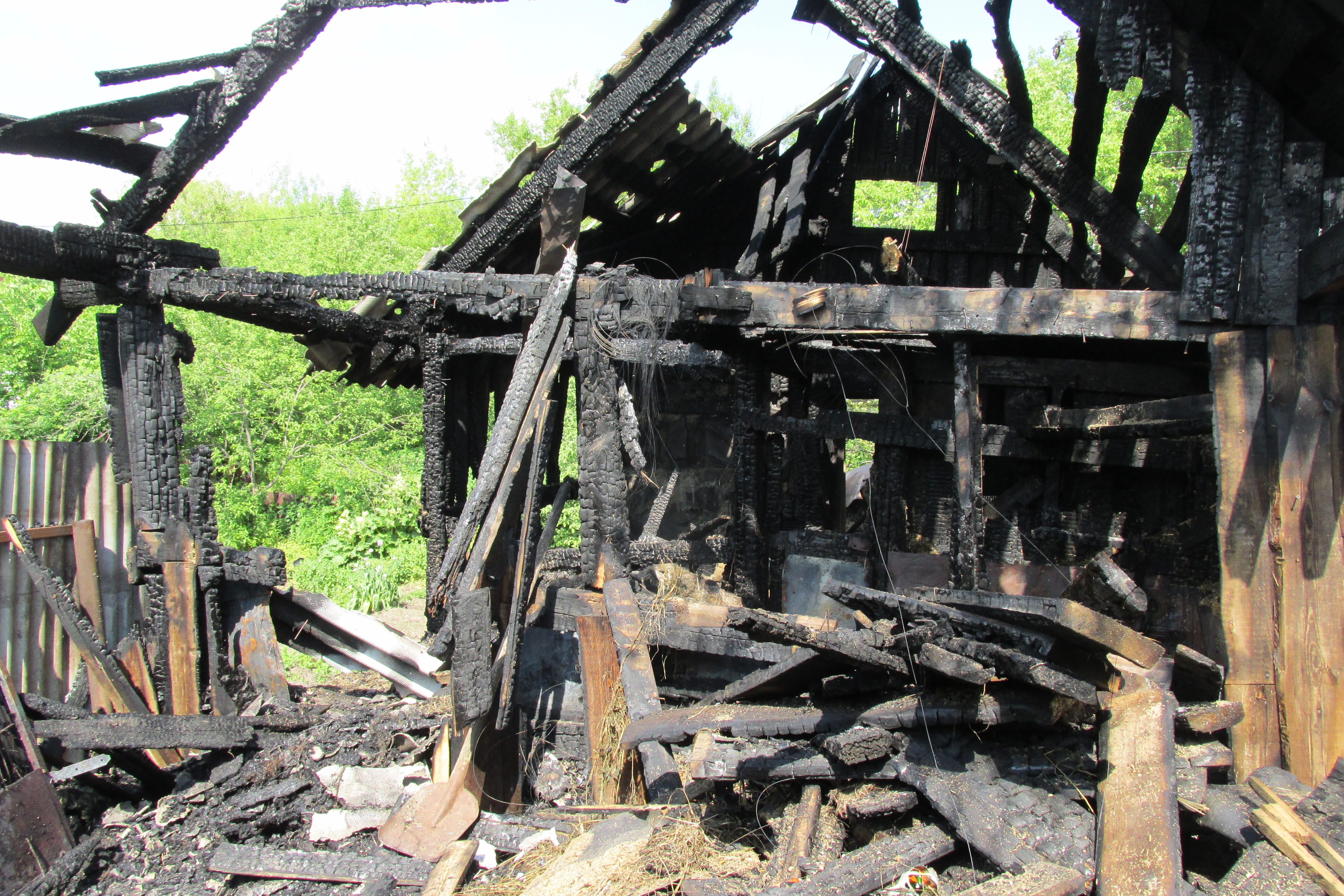 В результате пожара сгорела несколько голов домашней птицы. Частично обгорела и обрушилась кровля на площади 5 м2, сгорела стена хозяйственной постройки на площади 15 м2. Причина пожара в настоящий момент устанавливается. Имущество было не застраховано.