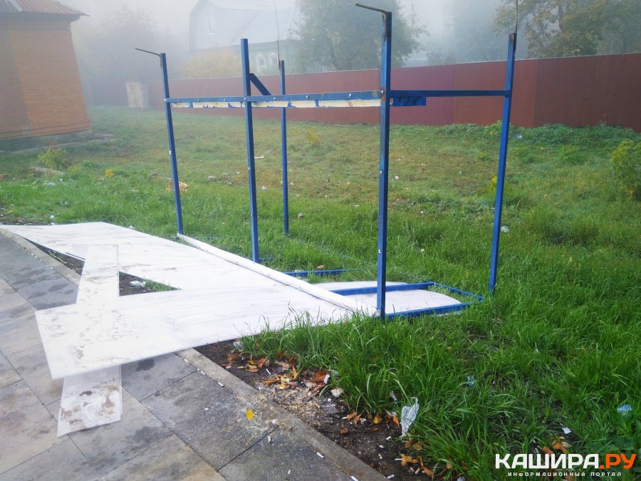 Не простоял и недели: неизвестные разгромили остановочный павильон на ул. Стрелецкой в Кашире