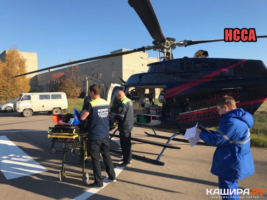 В понедельник днем над Каширой, гремя винтами, пролетел вертолет. Как оказалось, визит геликоптера в наш округ был вызван серьезной и неотложной причиной. Вертолет Национальной службы санитарной авиации прилетал в больницу Ожерелья, чтобы забрать пострадавшую в ДТП юную пациентку. В результате аварии 9-летняя девочка получила закрытую черепно-мозговую травму, ушиб головного мозга, перелом затылочной области, ушибы мягких тканей головы, грудной клетки и правого предплечья.