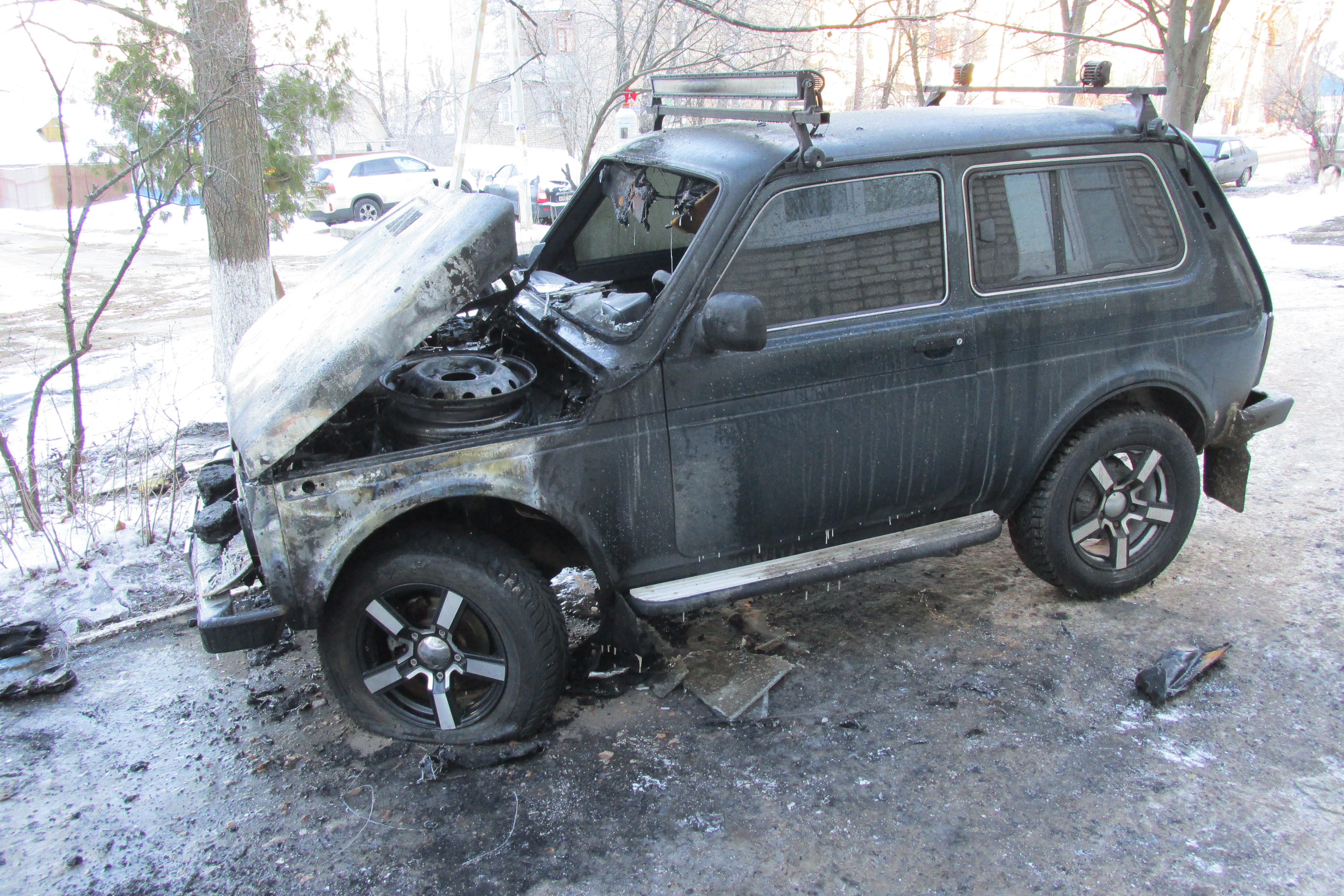 Горел автомобиль Нива, у которого огонь полыхал в моторном отсеке на площади 2 м.кв.