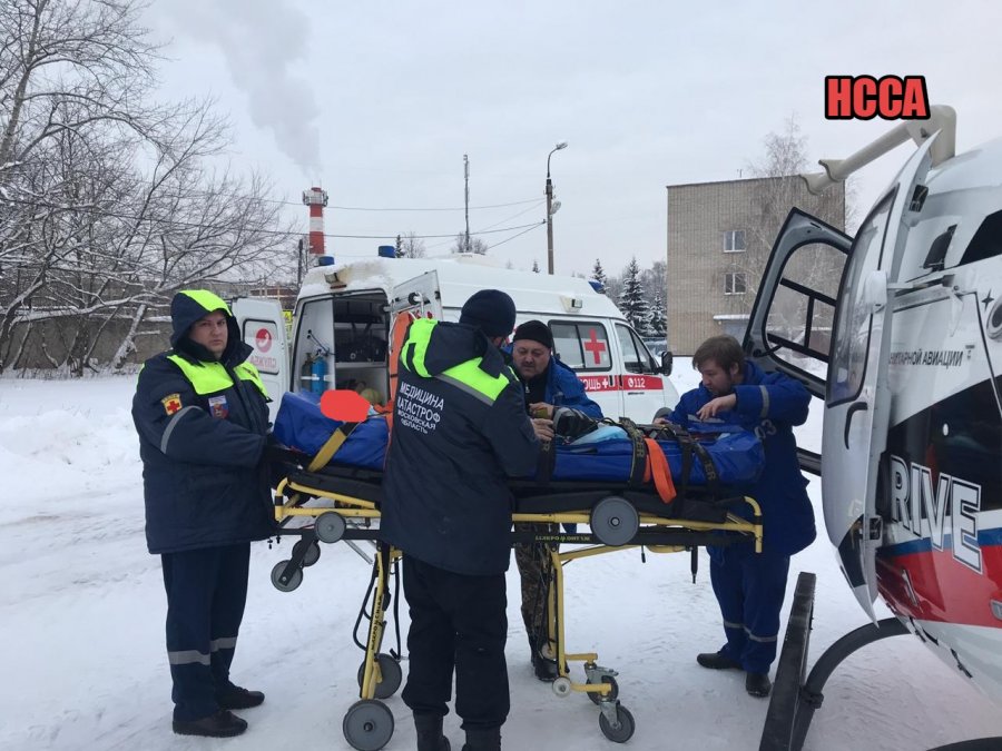 Пока по стране шествуют новогодние празднетства, службе медицины катастроф выходные и праздники только снятся. На днях на площадке у больничных корпусов в Ожерелье снова приземлился вертолет Национальной службы санитарной авиации с находящимся в тяжелом состоянии пациентом на борту. Сообщается, что на вертолете из военного госпиталя им. А.А. Вишневского г.Красногорск в городской округ Кашира для дальнейшего лечения доставили 53-летнего мужчину. У него диагностирована открытая черепно-мозговая травма, ушиб головного мозга тяжелой степени, закрытая травма груди, перелом позвонков.