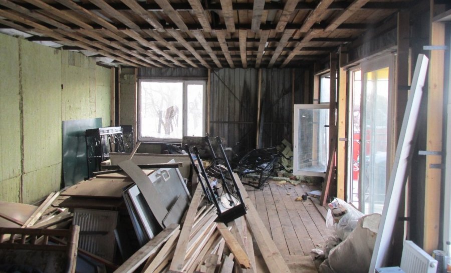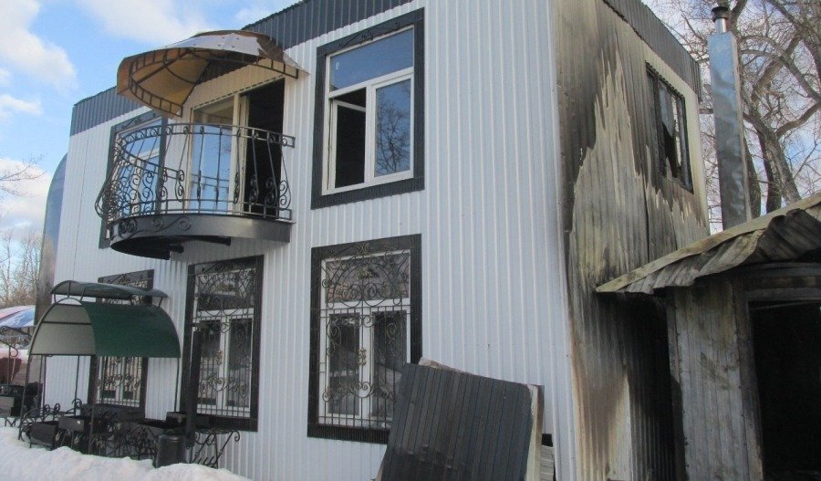 К моменту прибытия пожарных расчетов происходило открытое горение по всей площади одноэтажного деревянного здания постройки, обшитого металлическим сайдингом.