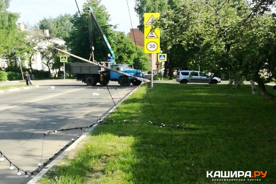 Сегодня рано утром некоторые жильцы домов в районе поликлиники в Кашире-2 проснулись от звука ударов, доносившихся с улицы. Как оказалось, водитель автомобиля Volkswagen врезался в опору освещения у дома №17/6 по улице Садовой. От удара столб завалился на проезжую часть, перегородив обе полосы движения. Оборванными в результате оказались не только провода, но и световые гирлянды.
