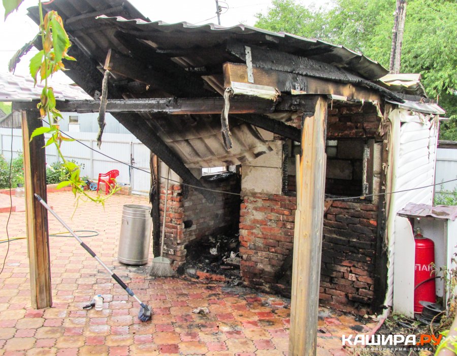 Помещение летней кухни полностью выгорело внутри, частично обвалился навес и крыша. Причиной пожара стало короткое замыкание в электросети.