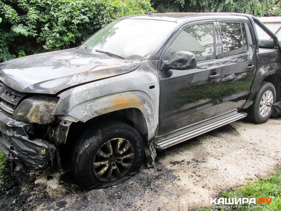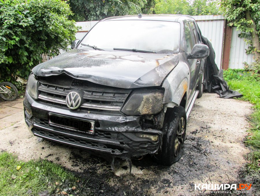 Ночью, около 2:20 в Кашире-1 на ул. Малая Посадская, д.27 из припаркованного автомобиля Volkswagen Amarok стали вырываться языки пламени.