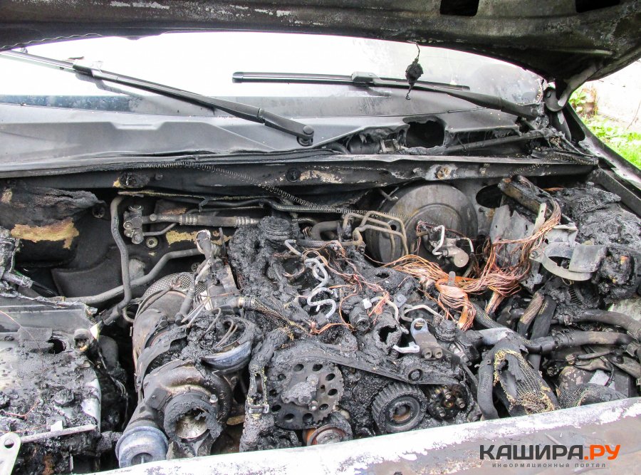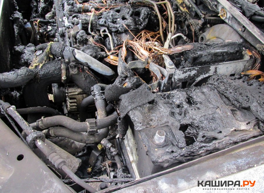 Моторный отсек, в итоге, получил наибольшие повреждения. Также обгорело лобовое стекло, оплавились приборная панель, фары.