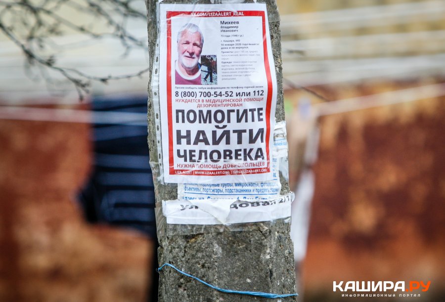 С 10 января этого года в Кашире и окрестностных городских округах вели поиск пропавшего без вести Владимира Ивановича Михеева. 73-летний мужчина, нуждавшийся в медицинской помощи, ушел из дома и всякая связь с ним прекратилось. Поиски не останавливались до последнего: оклейка ориентировок, обзвон больниц...