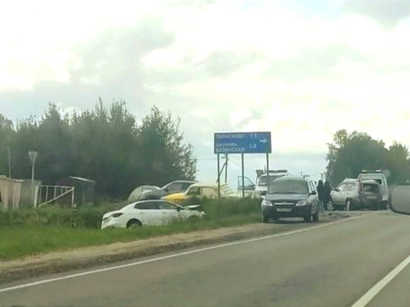 Очевидцы делятся кадрами массового ДТП, которое произошло на автодороге Кашира – Ненашево у поворота на деревню Тарасково.