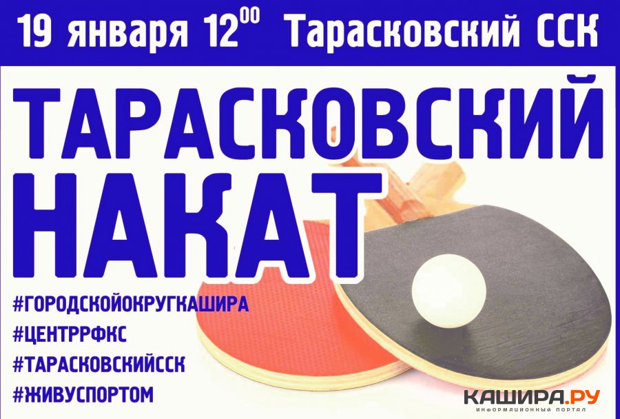 Праздники остались позади, настало время возвращаться в былую форму, в том числе и спортивную, которую предлагают восстановить организаторы традиционного турнира «Тарасковский накат». Традиционные соревнования по настольному теннису впервые пройдут в наступившем году. 19 января в 12 часов дня всех желающих приглашают принять участие в турнире в сельском спортивном комплексе деревни Тарасково.
