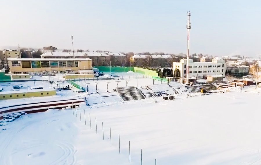 Несмотря на морозы, продолжается строительство трибун (в частности, идет укладка арматурной сетки), прокладываются коммуникации, по причине чего на ул. Центральной со стороны проезжей части ведутся земляные работы. Сдать объект должны к лету текущего года – естественно, при условии того, что выдерживаться будут и темпы, и качество проводимых работ.