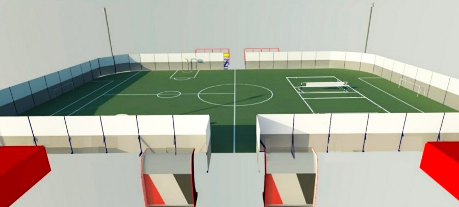 По имеющейся информации, коробка будет включать в себя хоккейную арену размером 26х56 метров, также используемую как мини-футбольное поле, баскетбольную площадку и волейбольную площадку. Кроме этого, предусмотрено устройство двух трибун по 30 мест, двух скамеек для запасных на 10 мест и двух раздевалок 5х6 метров. Освещаться хоккейная коробка будет с помощью четырех опор освещения.
