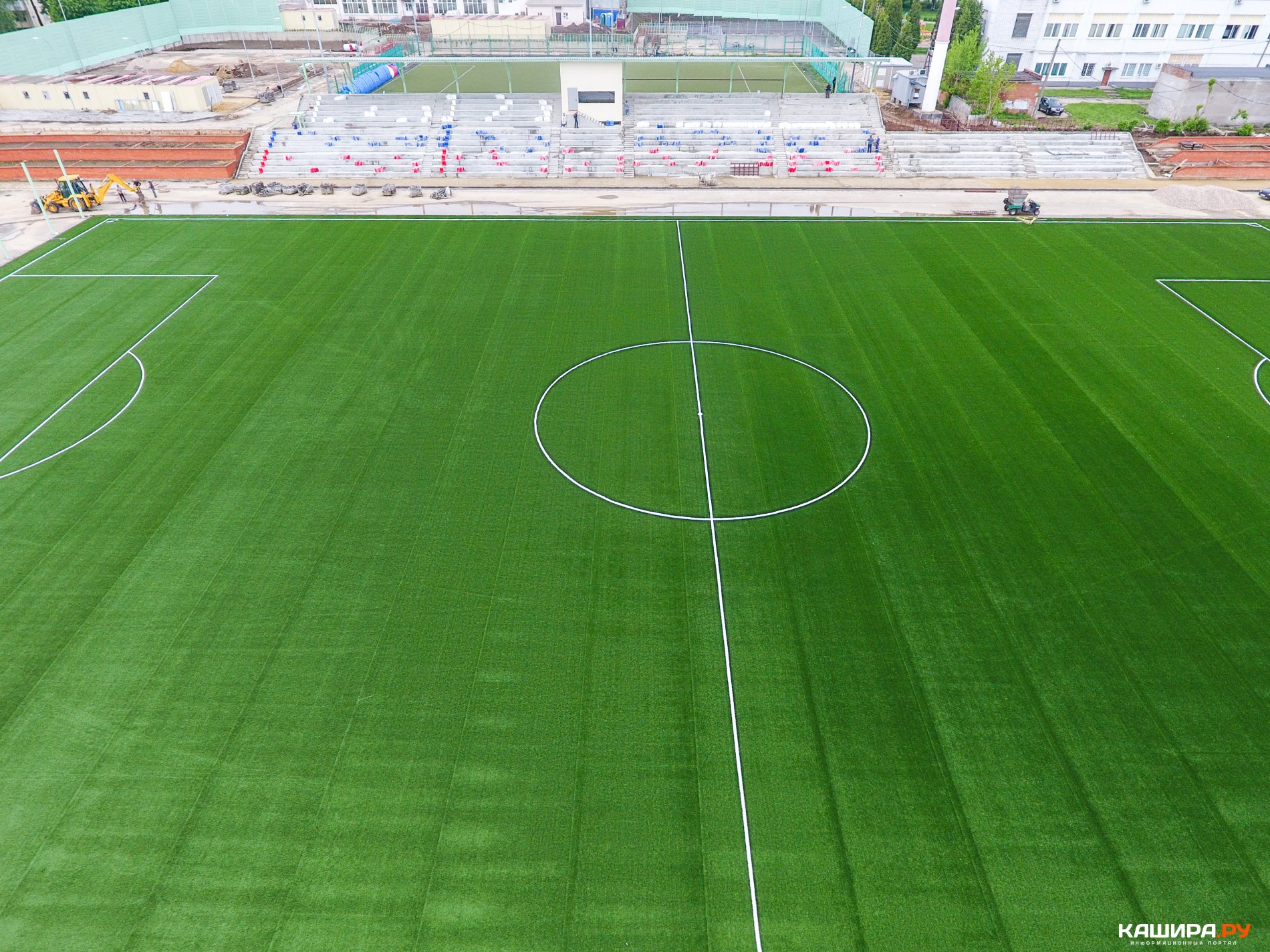 На стадионе спортклуба «Кашира» им. Н.П. Елисеева, где продолжаются работы по реконструкции, уложили новый футбольный газон. Довольно продолжительное время поле было «застелено» песчаным слоем в ожидании, когда температурный график войдет в требуемые нормы 15-20°С.