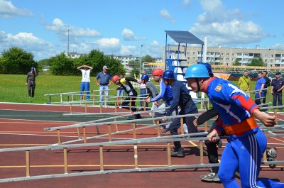 Первый день был отведен на индивидуальные виды: подъем по штурмовой лестнице в окно 4-го этажа учебной башни, преодоление 100-метровой полосы препятствий и пожарная эстафета. Во второй день спасатели соревновались в подъеме по выдвижной трехколенной лестнице в окно 3-го этажа учебной башни и боевом развертывании от автоцистерны.