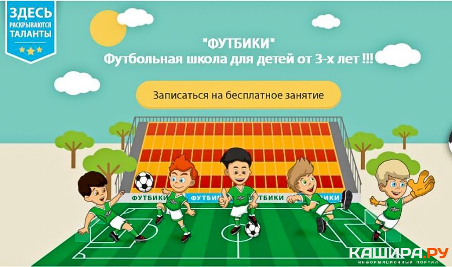 Открытие филиала футбольной школы «Футбики» для детей от 3-х лет запланировано в Кашире 14 февраля этого года. По информации, размещенной ФШ, тренировочные занятия будут проходить в Спортклубе «Кашира» (г. Кашира, ул. Садовая, д. 27) дважды в неделю. Ну а пока школа объявила о наборе в две группы: 1-я – это 2013-2012 год рождения, 2 группа – дети 2012-2011-2010 годов рождения. Запись в ФШ «Футбики» пройдет по итогам бесплатного пробного занятия.