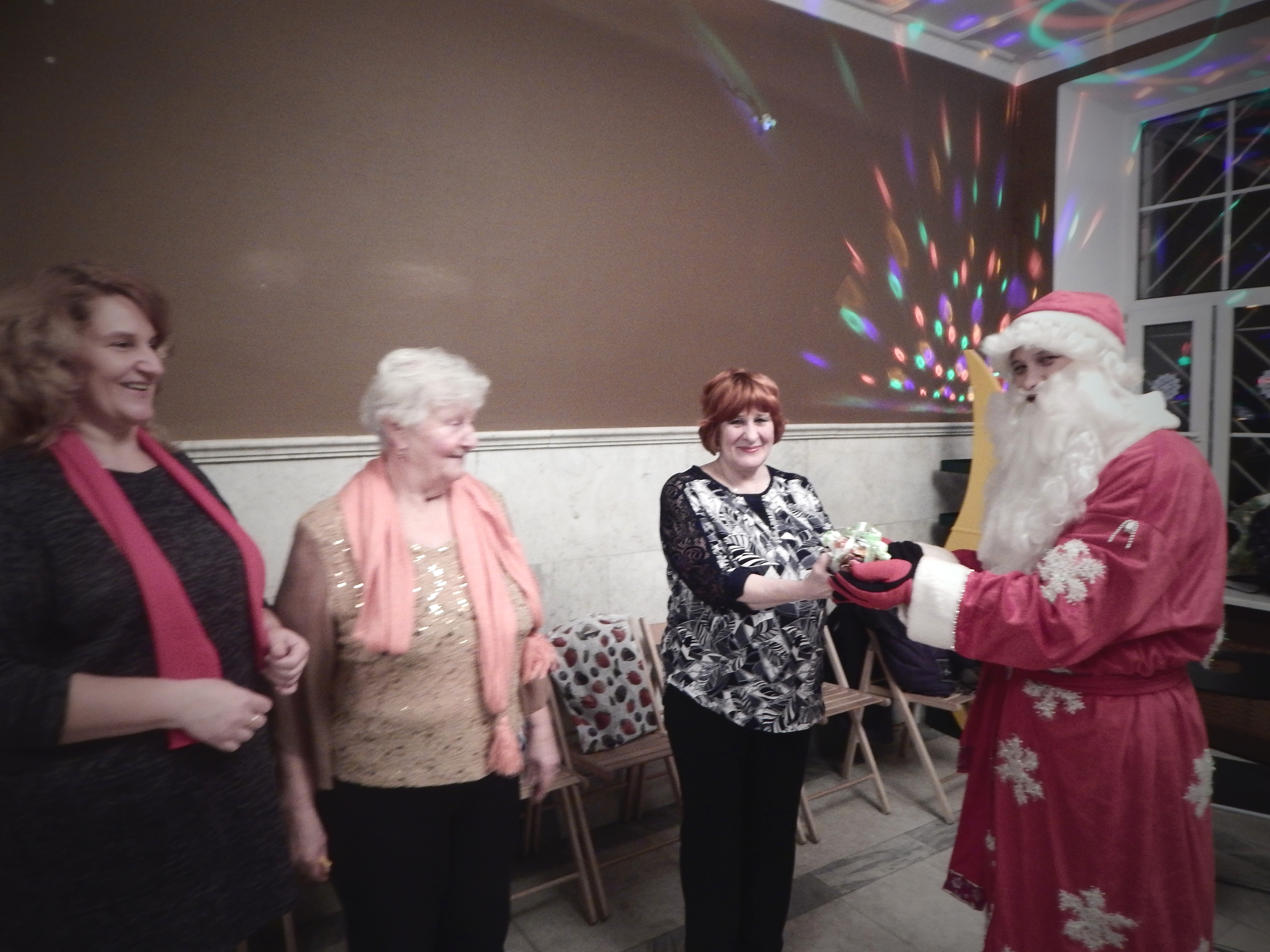 Фадеева В.В. получает приз от Деда Мороза за стихотворный экспромт