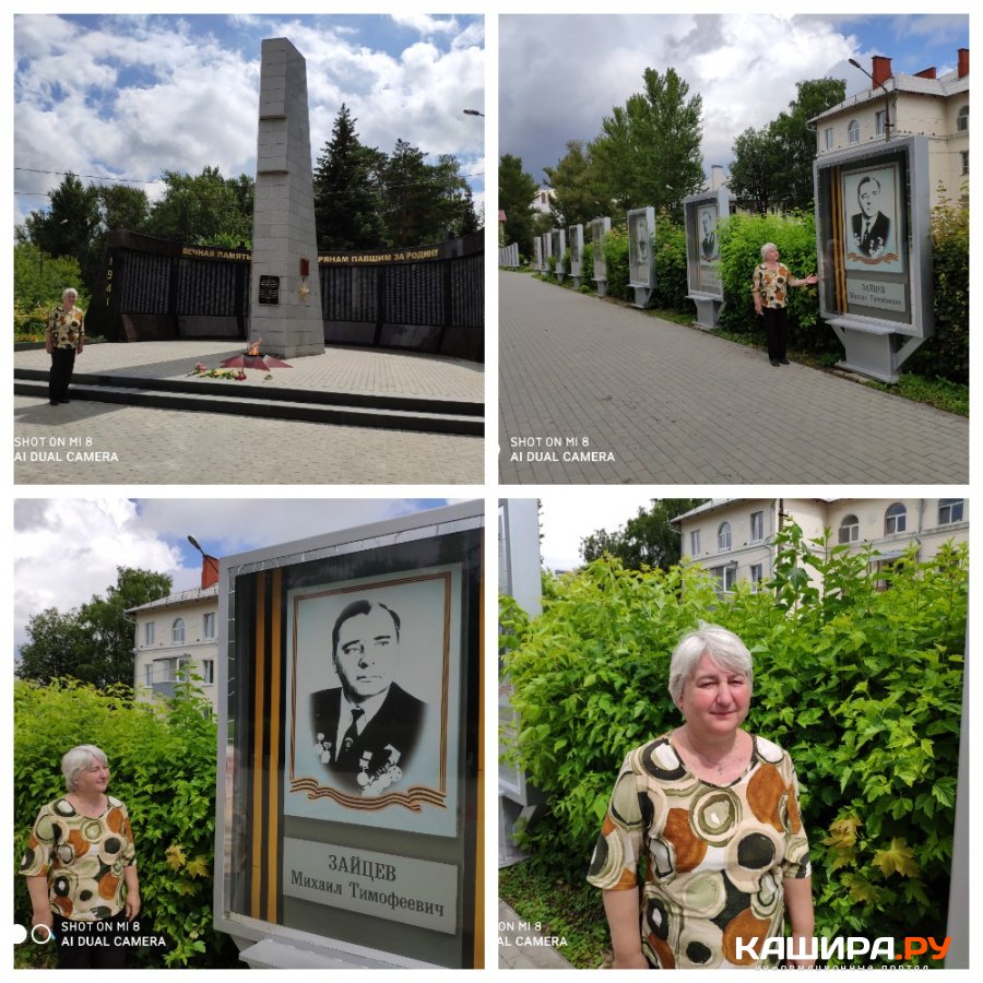 Я каширянка и горжусь тем, что у нас есть обелиск, единственный в своём роде в нашем городе. Мне очень нравится, что его сейчас реставрировали и там появилась Аллея Славы, на которой есть портреты людей. Среди них портрет Зайцева Михаила Тимофеевича, его я знала лично. Так сложились обстоятельства, он стал моим родственником в своё время. Я его узнала, когда он был уже в пожилом возрасте. Очень интересный человек, с которым было приятно общаться, слушать его воспоминания про войну. Иногда он уходил от ответа на мои вопросы, мотивируя тем, что сведения секретные, умел хранить тайны. Михаил Тимофеевич хороший человек, умел поддержать общение, уважительно относился к людям. Во время войны был совсем ещё молодой, был ранен. В мирное время долго ещё трудился до самой старости на ЗМК.