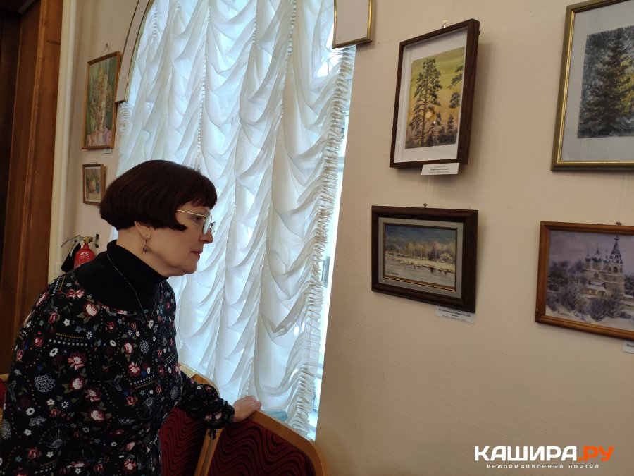 В ожидании концерта гости музея смогли познакомиться с творчеством каширских художников на тему "Зима".