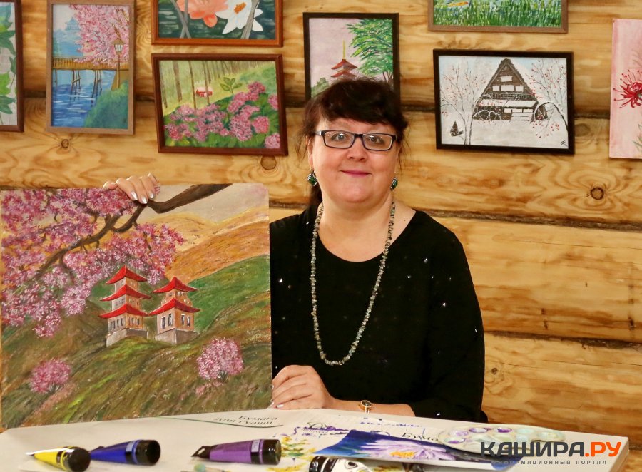 - В 2014 году я закончила на «отлично» курсы в ЕШКО (Европейская Школа Корреспондентского Обучения). А тут одна подруга начала рисовать, другая сказала: «Ты пишешь стихи, будто рисуешь словами…, почему бы тебе не попробовать рисовать на бумаге». Дочь меня поддержала, нашла онлайн курсы по рисованию. Нам понравился одни преподаватель – Игорь Сахаров -, фразы которого вызывали улыбки и запоминались, к примеру «А здесь мы добавим розовинку и пусть она прозвучит…». Слушать такого человека и смотреть его уроки интересно и весело. Я посмотрела много уроков, пробовала рисовать. Выбрала для себя акрил – среднее между гуашью и акварелью. Рисую на бумаге, оргалите, ламинате, на стекле, на жестянке… Муж снабжает меня материалами, грунтует холсты. Идеи беру из интернет, просматриваю много фотографий, мастер-классов. Никогда не копирую на 100%. Из направлений мне ближе импрессионизм. Недавно состоялась моя шестая выставка художественных работ в библиотеке имени Воронкова (г. Кашира-1), где были представлены расписанные мной старые подносы, бутылки, стаканы и несколько картин, одна из них – чёрно-серебристая картина под названием «Иду на свет», навеяна мастер-классом канадского художника Боба Росса. До этой выставки были следующие: в д. Топканово, в Ожерелье, в Тарасково, в Зарайске, в Доме творчества Щукина.