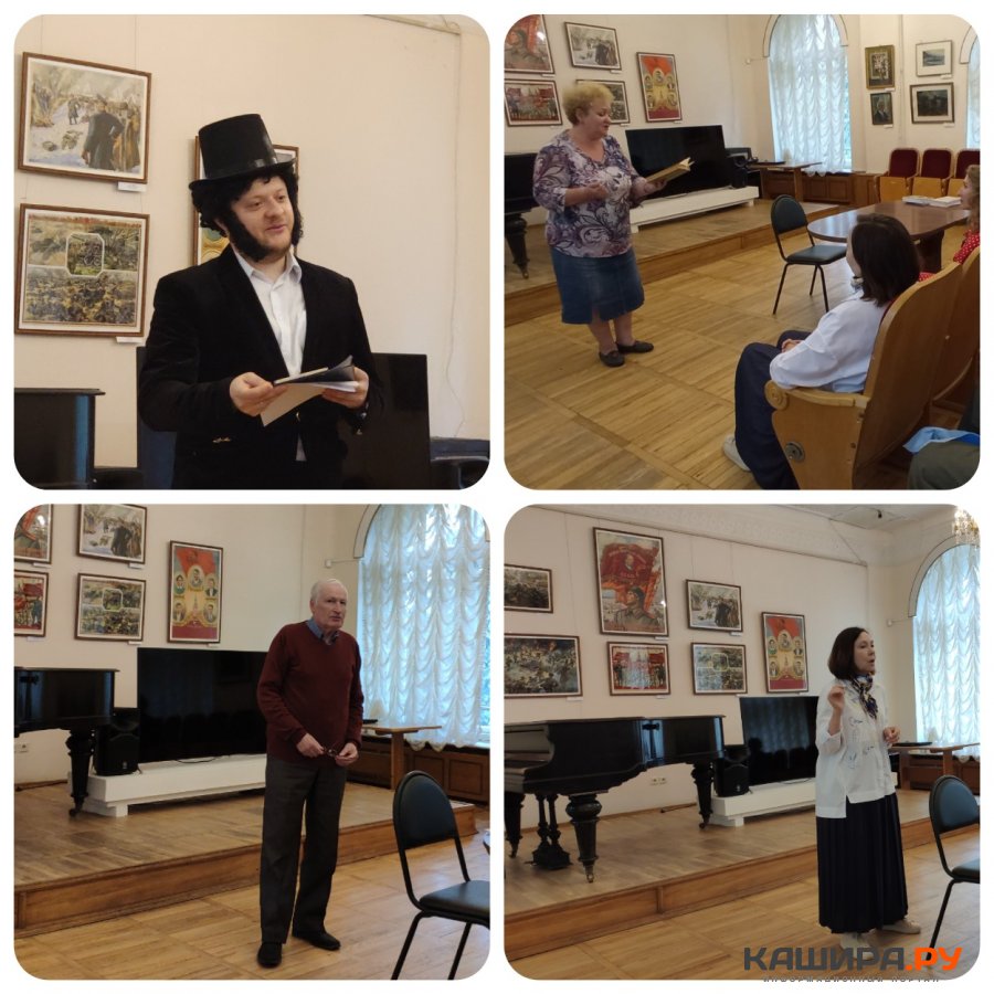 Городской округ Кашира поддерживает традиции празднования Дня русского языка и Дня рождения великого поэта А.С. Пушкина. В образовательных организациях, в учреждениях культуры проводится масса тематических мероприятий. Литературное объединение «Зодиак» под руководством Члена Союза писателей России, документалиста, публициста, Андрея Александровича Тернова, ежегодно участвует в библиотечных мероприятиях и собирается у памятника Пушкину в Кашире1, приглашая всех желающих. В этом году в назначенный для встречи час пошёл сильный дождь, но это не помешало собраться поклонникам поэта и русского языка. Мероприятие продолжилось в Каширском краеведческом музее. Ведущий встречи, Андрей Тернов в образе Александра Сергеевича, рассказал о взаимосвязи поэта и Каширы.
