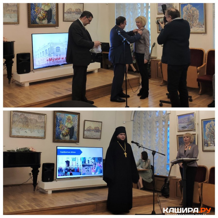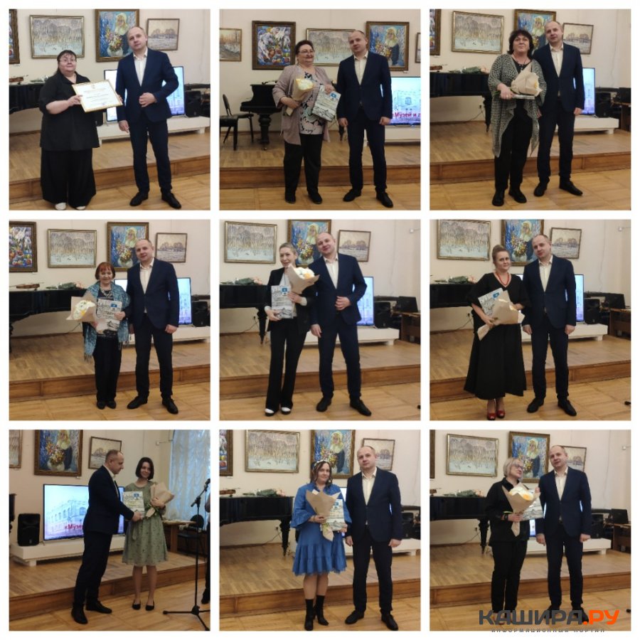 По поручению Главы г.о. Кашира Николая Ханина коллектив музея поздравил и.о. заместителя Главы г.о. Кашира Владимир Марухин. С начальником отдела по культуре Анной Маковской он вручил сотрудникам музея Благодарственные письма от Главы и памятные подарки.