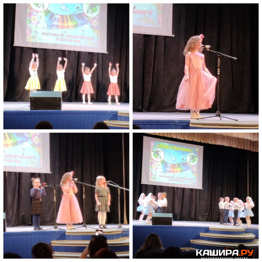 Мордовина И.) В городском округе Кашира 8 апреля 2023 года в КДЦ «Родина» прошёл окружной фестиваль дошкольного творчества «Светлячки». Маленькие «светлячки» в тёплый весенний день освещали своими талантами зал, сердца зрителей. В этом году 77 воспитанников из восьми дошкольных учреждений демонстрировали свои таланты родителям, друг другу, членам авторитетного жюри. Дошкольные образовательные учреждения – участники Фестиваля: