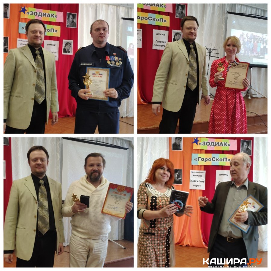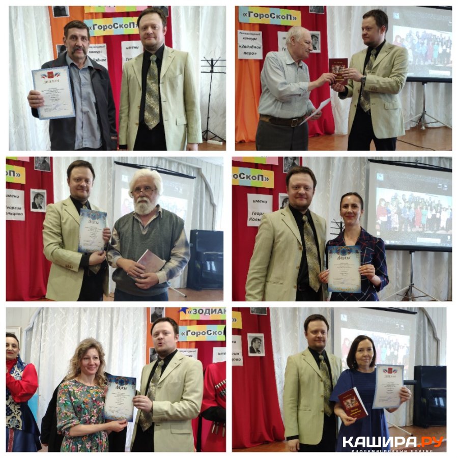 Радостно осознавать, что каширяне стали обладателями многих дипломов разных степеней: Андрей Тернов, Наталья Елизарова, Полина Позднякова, Марина Нефёдова, Роман Котов, Екатерина Гелис, Геннадий Локтев, Игорь Скляров, Светлана Корнева (Вета), Геннадий Филиппов, Софья Орешникова, Андрей Родионов (Ожерелье), Владимир Сибатров ( участник всех конкурсов «Звёздное перо», имеет двух детей, пишет для детей, гитарист, рокер, пишет треки…), Вячеслав Калужный (Ожерелье), Владислав Бусов, Татьяна Пушкина, Марина Уткина, Лилия Тетерина, Тамара Полуботько, Юлия Хлебникова (теперь Карташова, переехала в г. Сергиев-Посад), Александр Егерев (поэт, певец, недавно состоялся его творческий вечер в Доме творчества Щукина), Татьяна и Дмитрий Игошины, Людмила Бондарь (посмертно), Евгений Шибаршин, Валентина Лебедева, Мария Серёгина, Альбина Шагир, Лидия Моисеенко, Кристина Железова, Галина Абакумова, Владимир Филиппов, Дмитрий Чекун ( Кашира-Москва), Елена Кирюхина, Елена Климова, Александр Харламов, Ксения Иевская, Виктория Торопчина, Мария Булдакова и др.