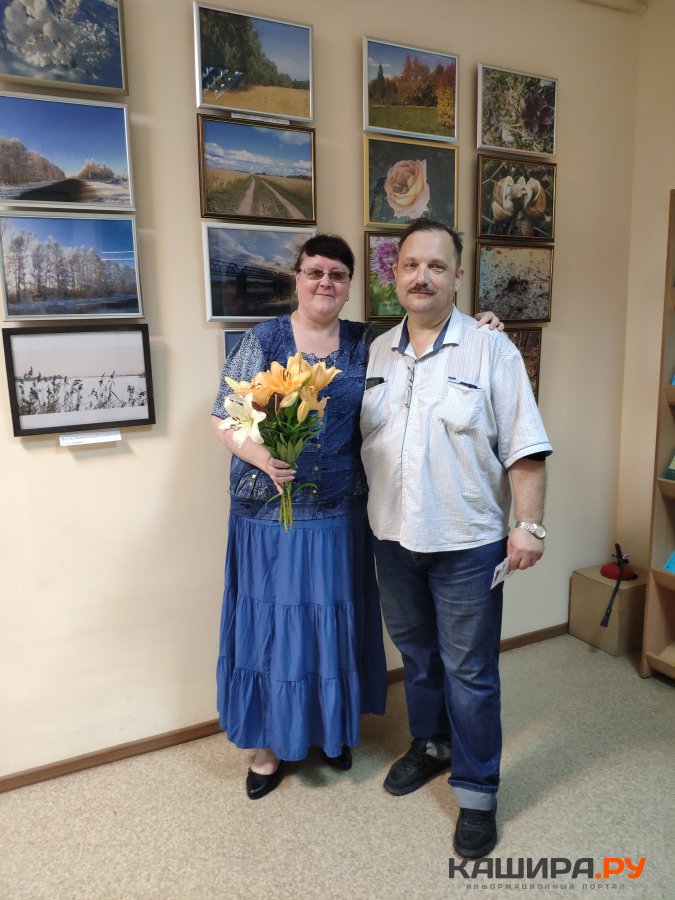 На выставке много пейзажных фото. В связи с этим Галина прочитала стихи «Дождь в Кашире», «Начало июня в Кашире».