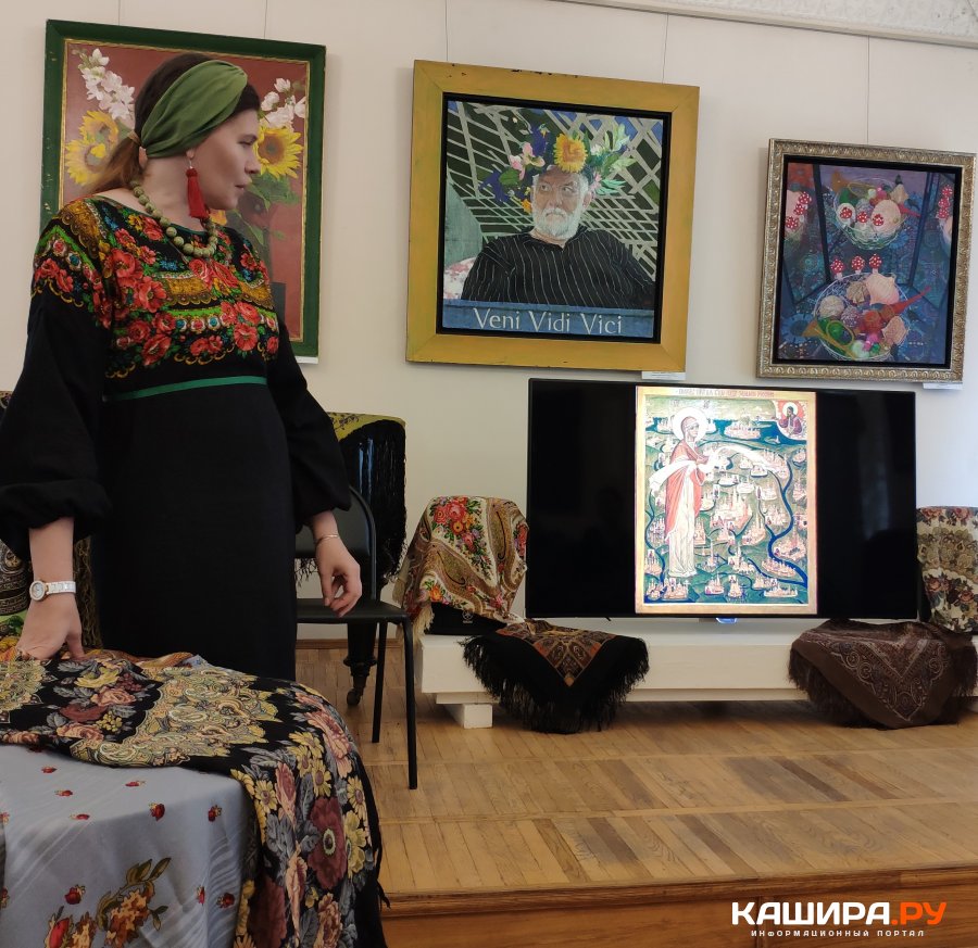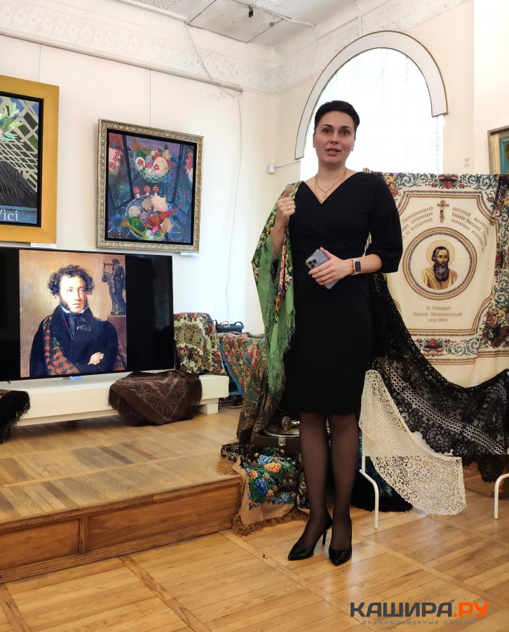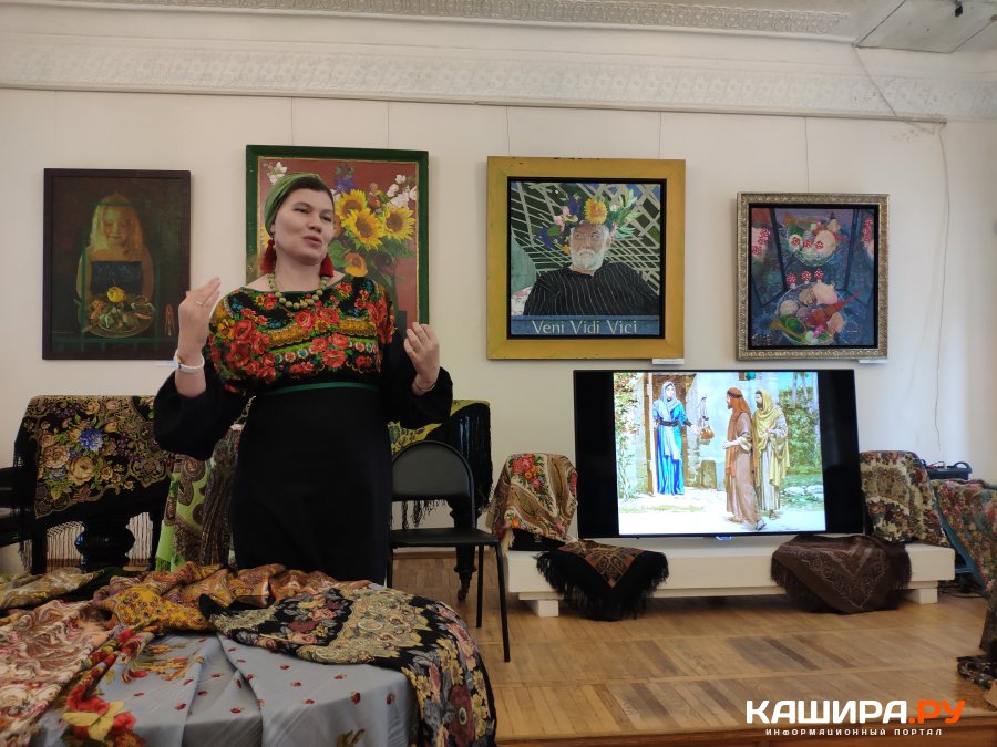 Шмелёва Александра Анатольевна – историк-искусствовед, в Кашире занимается духовно-нравственным воспитанием и популяризацией русской традиционной культуры, провела экскурс в историю платка.