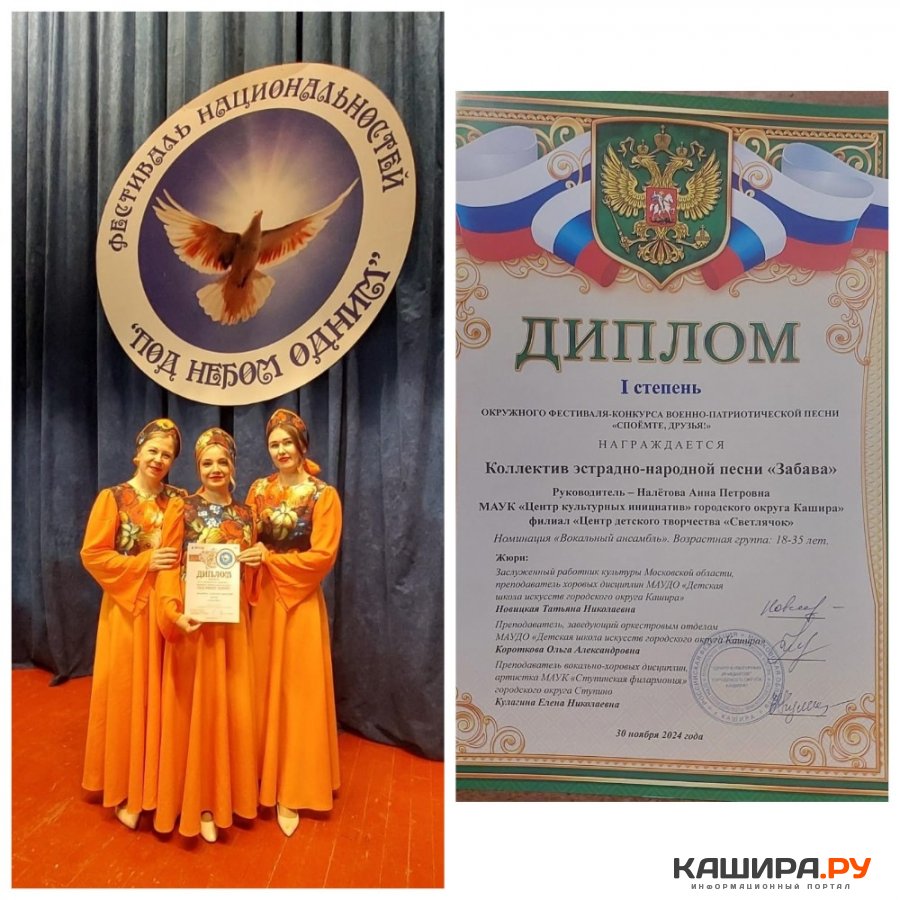 На фестивале «Споёмте, друзья!» в ДК Ленина г.о. Кашира коллектив трио «Забава» за выступление получил Диплом I степени.