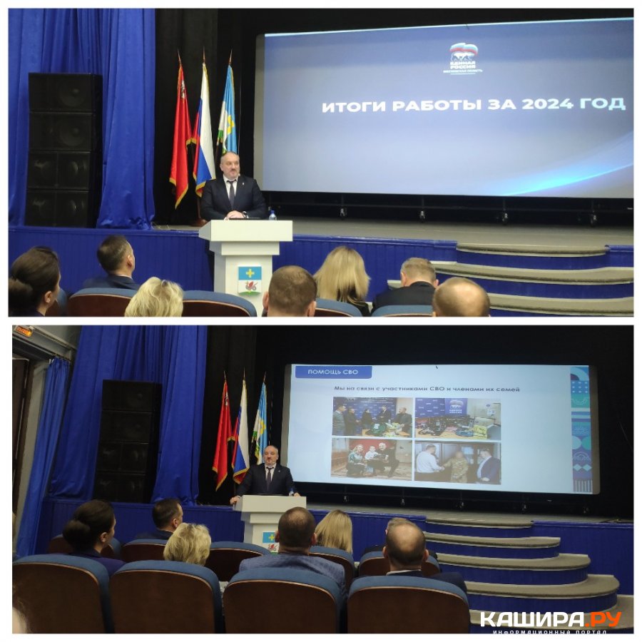 В первом отделении собравшиеся услышали отчёт о работе выполненной администрацией округа и местным отделением партии «Единая Россия» в 2024 году.