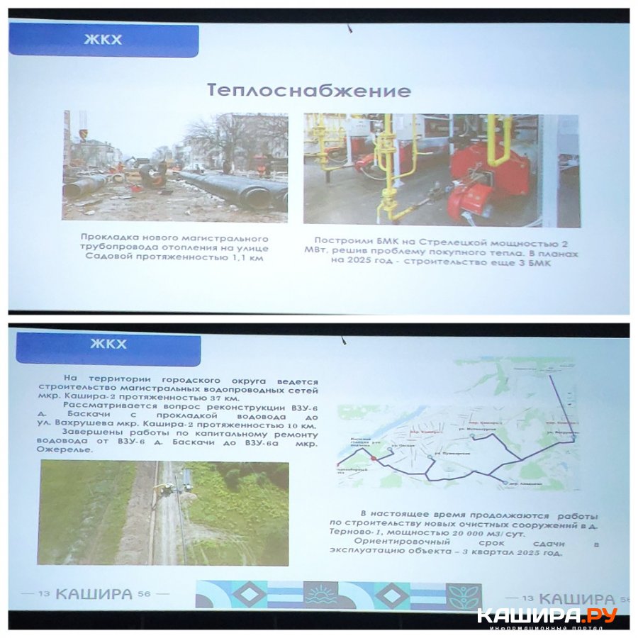 Построена блочно-модульная котельная на Стрелецкой и планируется строительство в 2025 году БМК на ул. 1 Дзержинская, которая даст тепло школе 9, новому зданию ОВД (запланирован переезд в мае). На станции Кашира будет построены ещё два БМК.