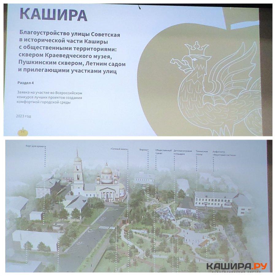 Во второй части встречи собравшиеся обсуждали проект по благоустройству улицы Советской и общественных территорий исторической части города Кашира.