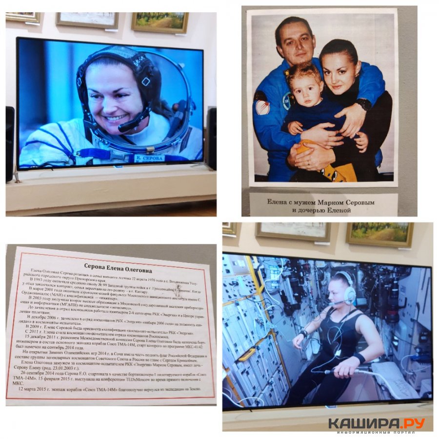 26 сентября 2014 года Елена Серова стартовала в качестве бортинженера пилотируемого космического корабля «Союз ТМА – 14М» и вошла в состав 41 и 42-й основных экспедиций, стала первой россиянкой на борту международной космической станции, первой в мире мамой, побывавшей в космосе. 17 последних лет в стране женщины в космос не летали. А до Елены Серовой были Валентина Терешкова, Светлана Савицкая, Елена Кондакова. Елена Серова-наша землячка. Небольшой подмосковный город Каширу Елена считает своей малой родиной. Здесь родился её отец. В Каширу семья вернулась по окончании военной службы отца семейства. Здесь родители и сестра переживали 167 суток космического полёта четвёртой россиянки-космонавта, заботясь о её дочери Алёнке, которая в Кашире пошла в детский сад. Елена Олеговна всегда с удовольствием приезжала, чтобы почувствовать себя не космонавтом, а любимой дочерью, матерью и сестрой, побыть в кругу семьи.