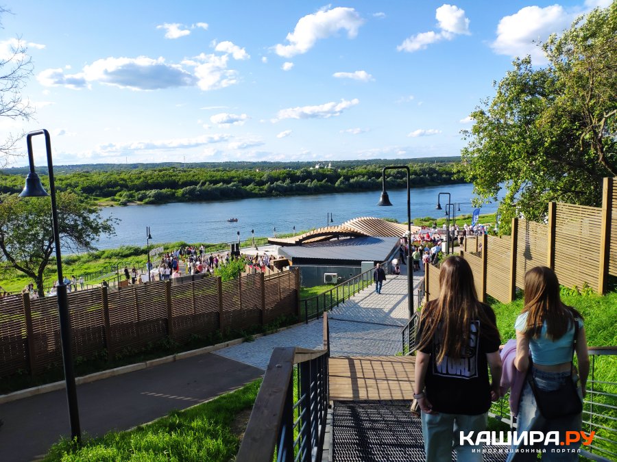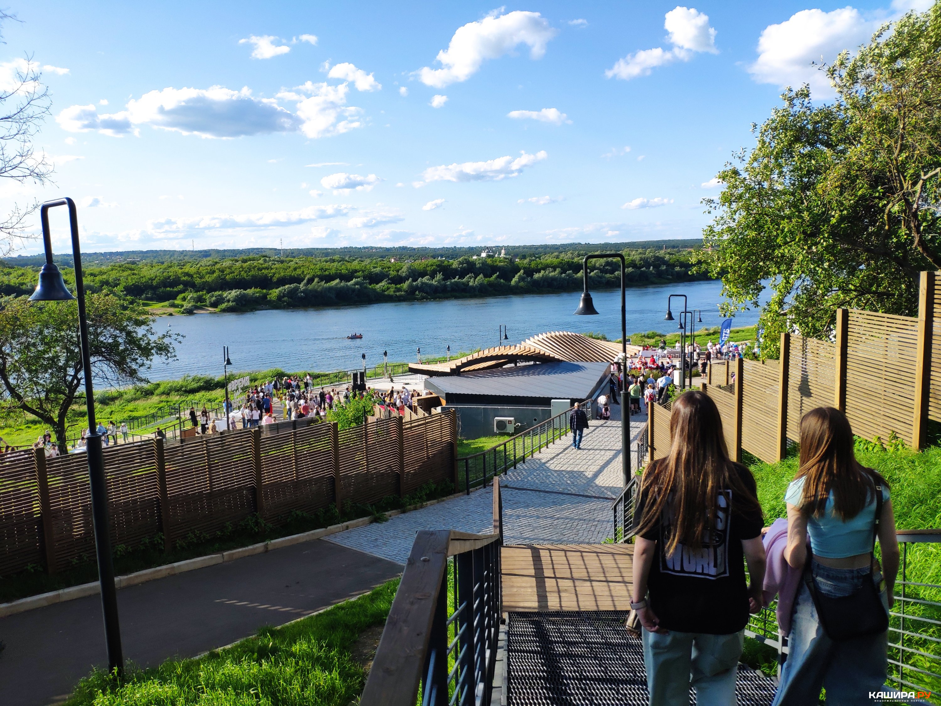 Второй день фестиваля проходил на набережной. При входе на площадку каширян и гостей города встречали обаятельные волонтёры, которые дарили серебристые шнурки на запястье на память о празднике.