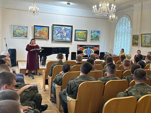 В.Н. Маковский поздравил всех с выставкой и в связи с присутствием военнослужащих напомнил о ратном подвиге советского солдата, рассказал и о своей службе в армии.