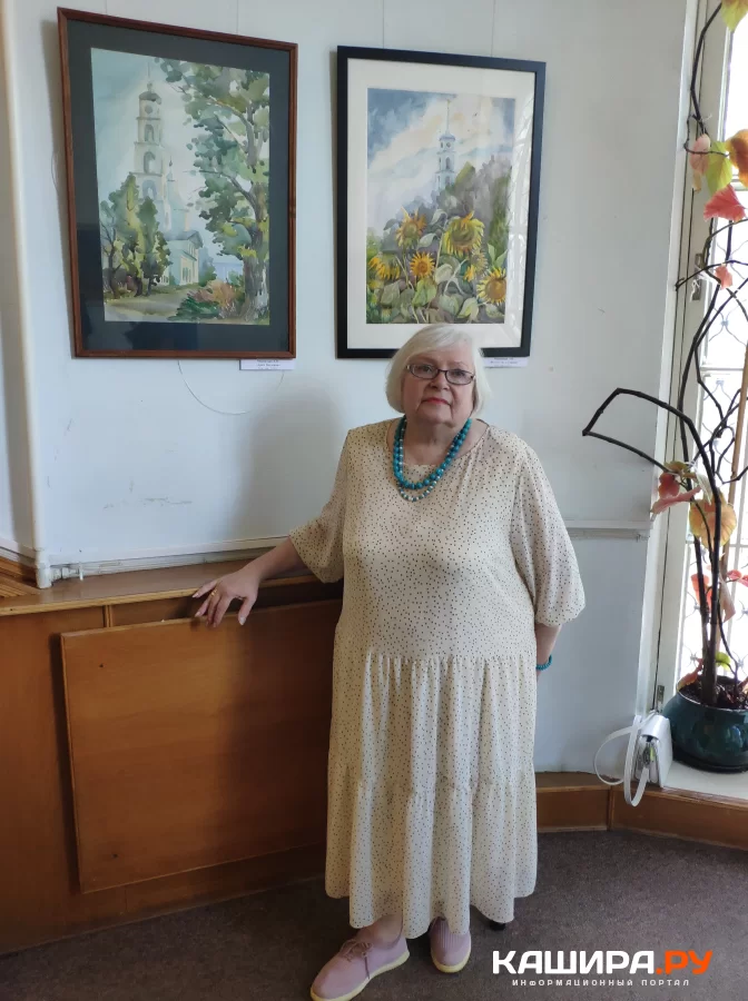 Людмила Владимировна Маковская, коренная каширянка, рассказала о том, что её супруг- потомок известной творческой династии Маковских. Их дети и внуки занимаются творческой деятельностью, окончили или обучаются на архитекторов, дизайнеров, дирижёров, художников-преподавателей. Династия продолжается. Людмила Владимировна рассказала, что рисовать любила с детства. «Любовь моя – это акварель. Водяная краска, которая позволяет мне передать все чувства мои на бумаге. Акварель – это сложная живопись. Её нельзя переписывать. Разных техник много. Я использую и «по сырому», пропись потом «по сухому» и др. На вернисаже есть две работы с натуры – вид на Оку «с блюдечка». Они написаны буквально за 40 минут. Больше их нельзя было рисовать, иначе не будет прозрачности, лёгкости изображения, нужного цвета. На выставке представлены два больших натюрморта «Каширская старина». На них ушло больше времени. Важно подобрать натуру, чтобы она соответствовала, ложилась в душу. Потом зарисовка карандашом, обработка «по сырому», пропись".