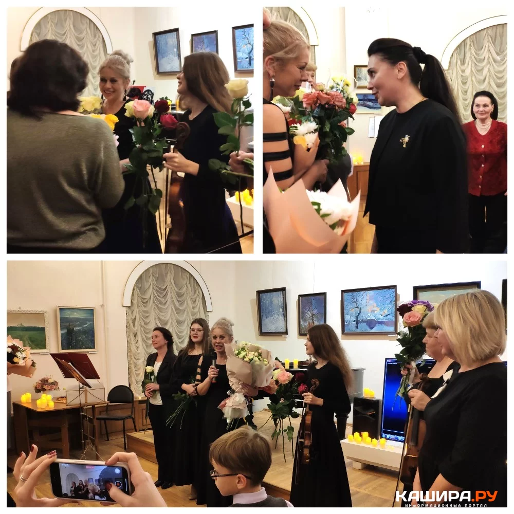 На концерте присутствовала директор детской школы искусств г.о. Кашира Зайцева Наталья Александровна с супругом. Она вручила руководителю ансамбля цветы и поздравила с днём рождения. Родные и близкие присоединились к поздравлениям. Конечно, директор музея Ольга Халаим выразила своё восхищение выступлением ансамбля и поздравила Ольгу Короткову с днём рождения, вручив цветы и подарок. Музей подготовил шикарные букеты всем музыкантам.