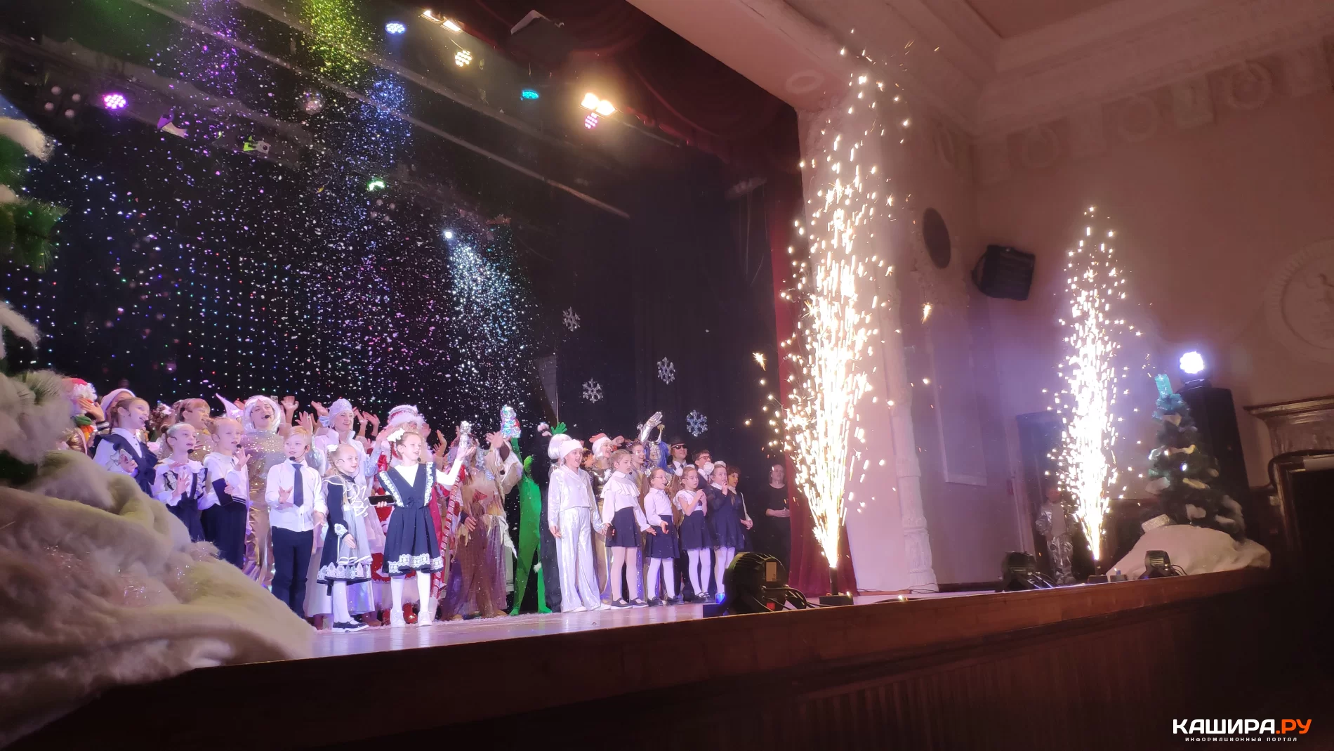 В фойе маленьких каширян встречали сказочные персонажи, которые развлекали детей до начала сказочного путешествия. Была востребована и красиво оформленная фотозона. Каширская активная молодёжь дежурила в зале, чтобы обеспечить маленьким зрителям комфорт и помочь в случае необходимости.
