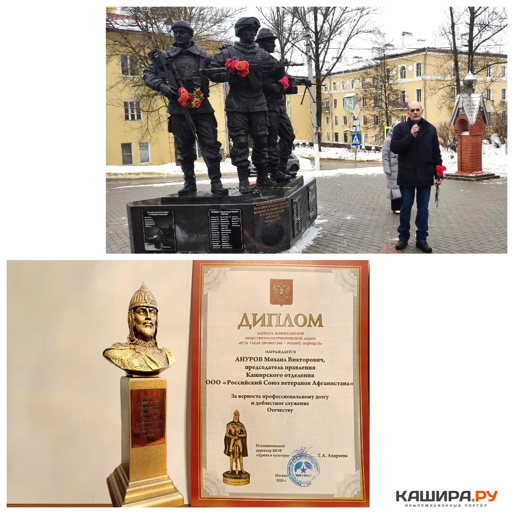 Каширское районное отделение «Российского Союза ветеранов Афганистана» в лице Михаила Викторовича Анурова было награждено Дипломом Межрегионального общественного фонда «Армия и культура» и статуэткой Святого Александра Ярославовича Невского в номинации «За верность профессиональному долгу и доблестное служение Отечеству».