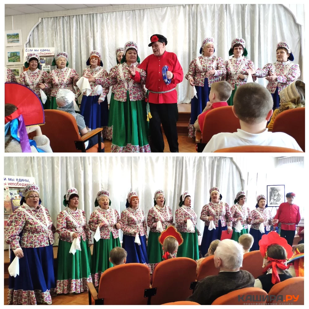 В клубе патриотического воспитания «Россия – страна ста народов» городской детской библиотеки – филиала «Библиотека – музей кукол» состоялась встреча поколений: юных читателей – учащихся «Средней общеобразовательной школы №1 им. Героя Советского Союза А.И. Выборнова» (классный руководитель Юрченко И.Д.) и участников ансамбля ветеранов и детей войны «Журавушка» под руководством Марины Гвоздяковой. Были на встрече и каширяне, любители живой музыки, народного творчества.