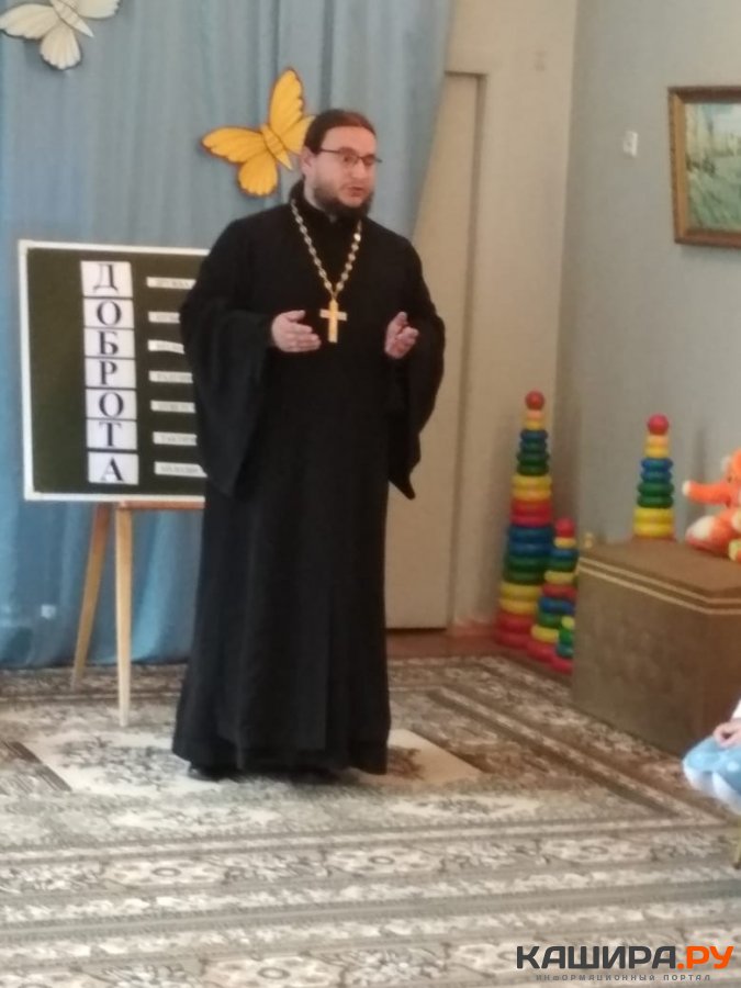 В работе клуба "Растём вместе" на тему "Дорога добра" в д/с 9 принял участие настоятель Никитского храма иеромонах Александр Волков.